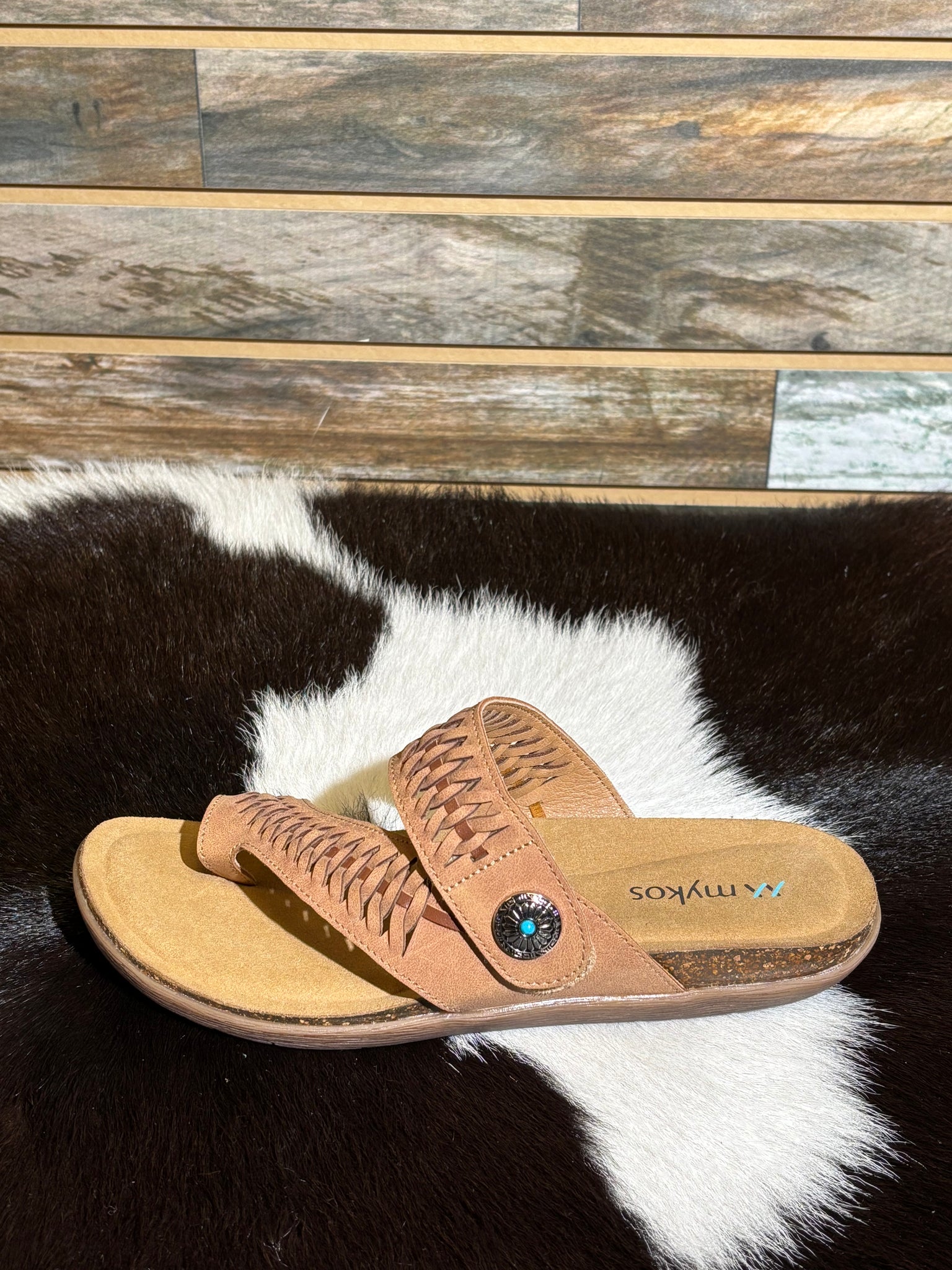 Sandal with leather straps with an adjustable top strap, with a decorative concho pin on the side, a beautiful addition to any closet!